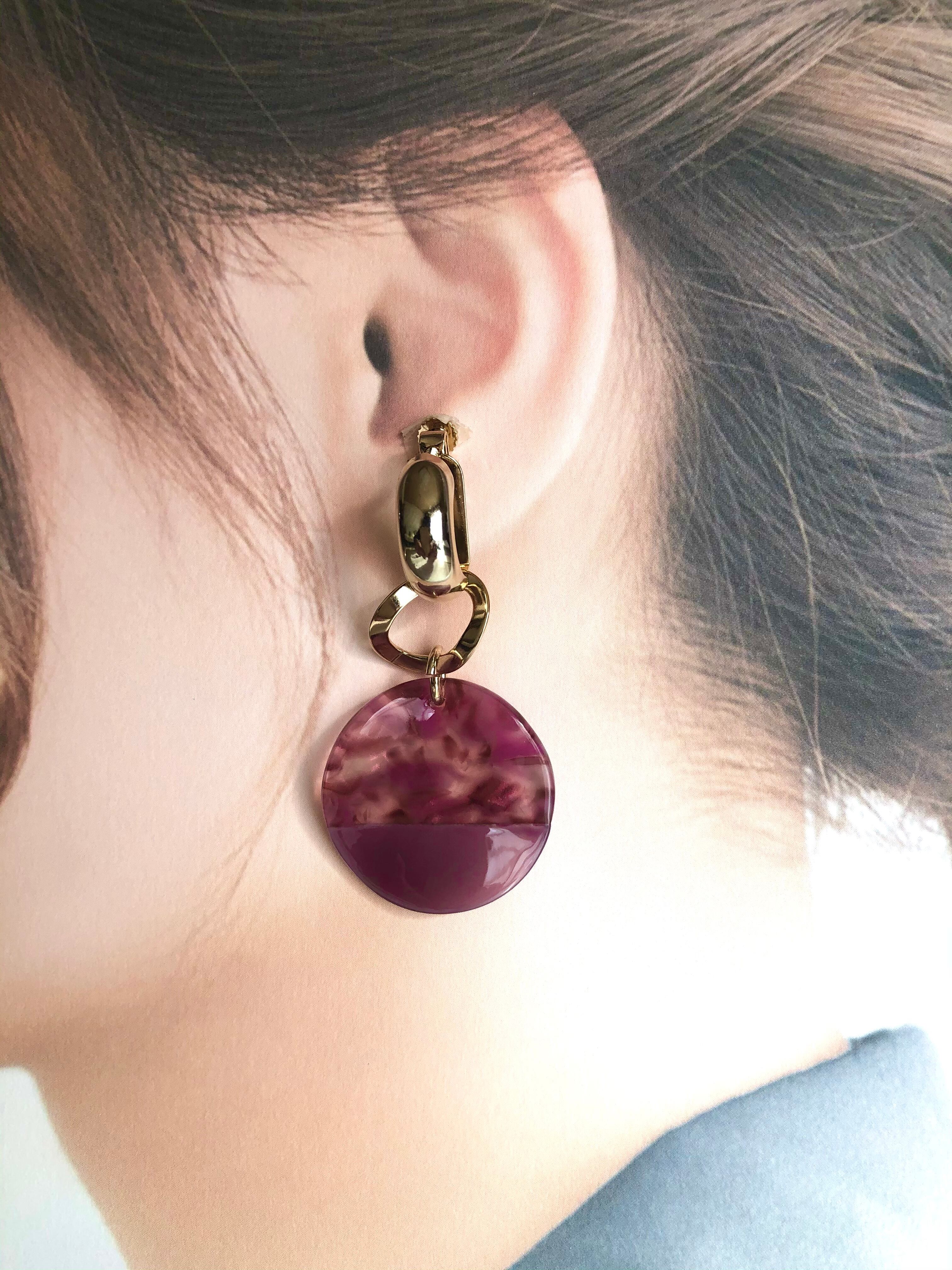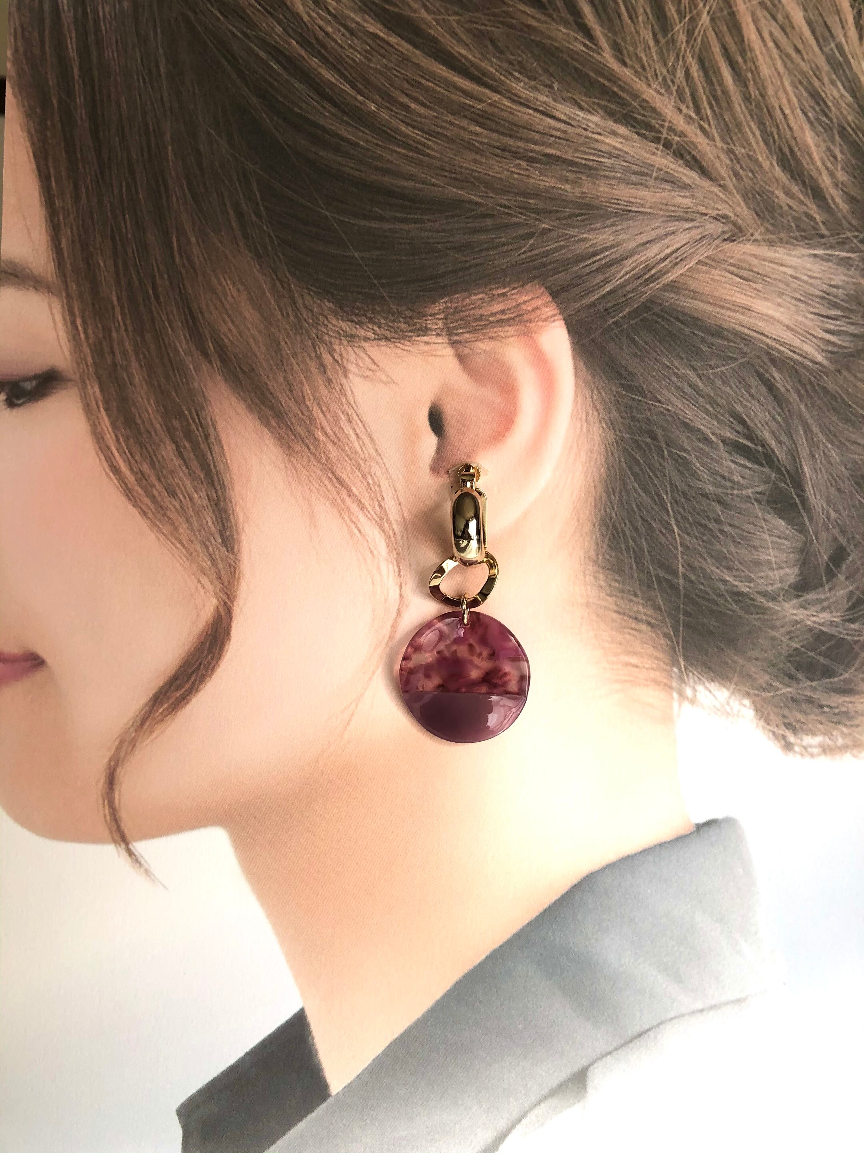 ☆ アクリルツートンプレート☆ウェブトップホール☆イヤリング☆素敵な紫色☆秋〜冬をイメージしたイヤリングです、金メッキ加工のイヤリングルこれからの季節にピッタリなイヤリング是非ご検討下さい。